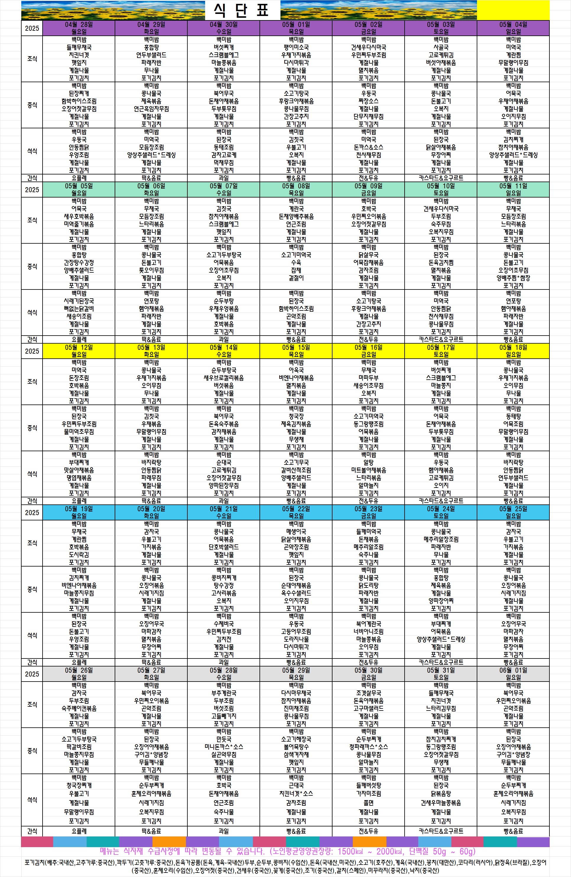 플래티늄 소망 요양원 2025년 05월 프로그램 일정표 및 식단표 관리자 2025-05-04 15:30 플래티늄 소망 요양원 2025년 5월 프로그램 일정표 및 식단표 입니다. 다음글 플래티늄 소망 요양원 2025년 05월 소식지 이전글 플래티늄 소망 요양원 2025년 04월 소식지 목록