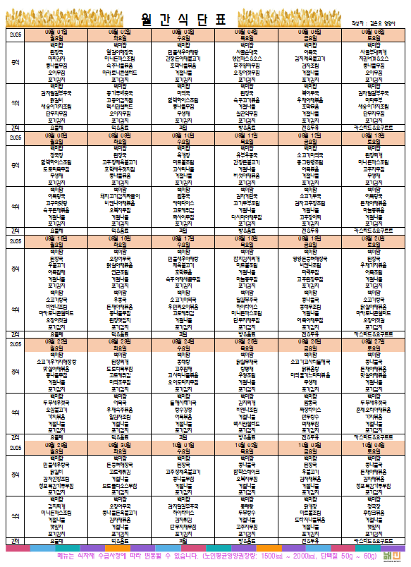 플래티늄 소망 주야간보호센터 2025년 9월 프로그램 일정표및 식단표 관리자 2025-09-03 17:11 다음글 플래티늄 소망 주야간보호센터 9월 소식지 이전글 플래티늄 소망 요양원 8월 소식지 목록