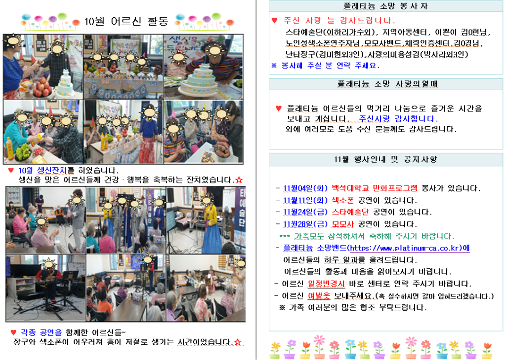 플래티늄 소망 주야간보호센터 11월 소식지 관리자 2025-11-03 09:38 다음글 플래티늄 소망 요양원 12월 프로그램 계획서 및 식단표 이전글 플래티늄 소망 주야간보호센터 2025년 11 프로그램 일정표및 식단표 목록