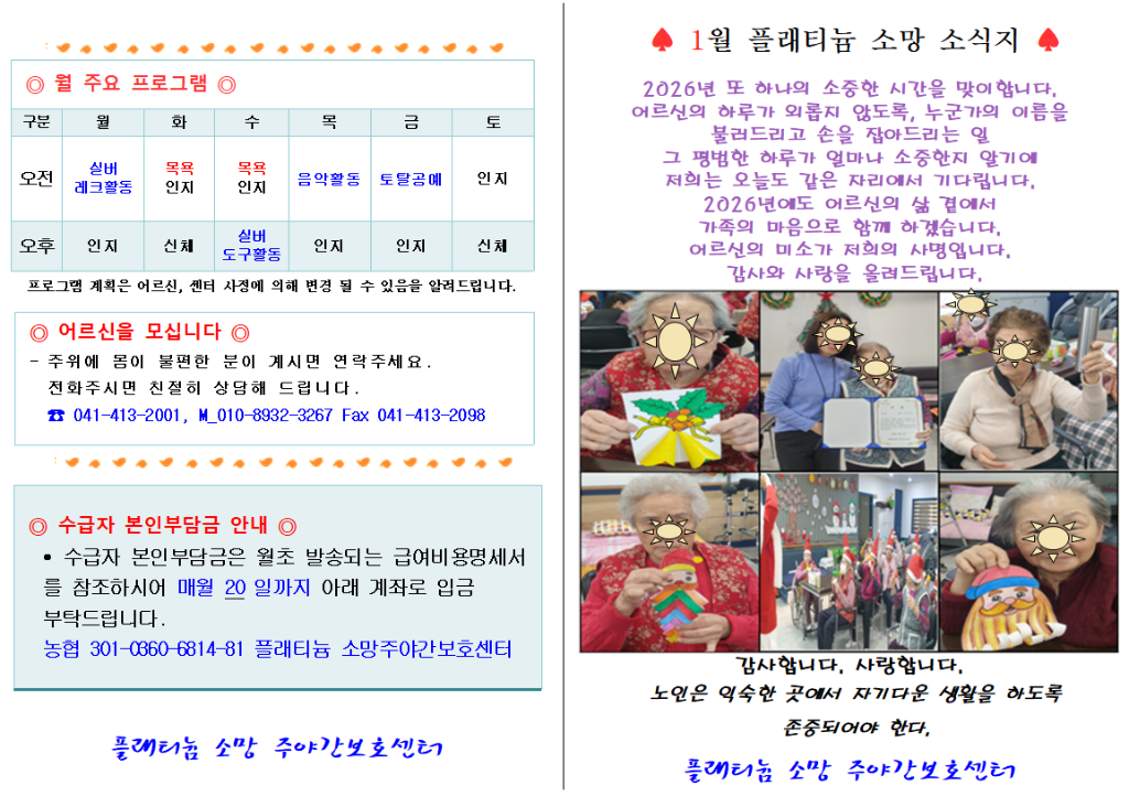 플래티늄 소망 주야간보호센터 2026년 1월 소식지