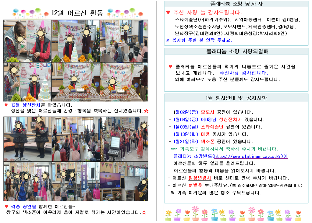 플래티늄 소망 주야간보호센터 2026년 1월 소식지